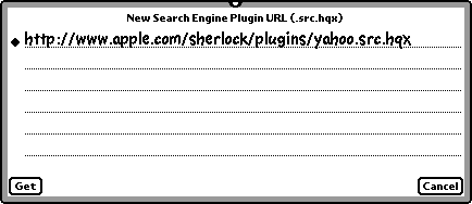 Provide a .src.hqx file URL. Hemlock reads only .src.hqx files. Unfortunately, many Sherlock plugin authors have chosen to encapsulate their .src files in Stuffit (.sit or .sit.hqx) archives, so they can include README files and pretty icons for the Sherlock plugins. Stuffit is a proprietary format and Hemlock cannot read it.