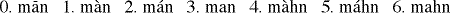 The "Cantonese (Yale)" module expects the user to enter the romanized spelling of the word without the inflection information (no accent, no following "h"), but include the accent as a number after the word. For example: ngo4 The number values are those given above (remember that high and high-falling are both 1).