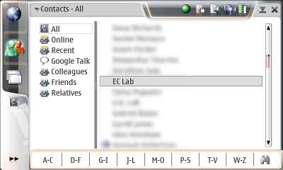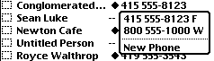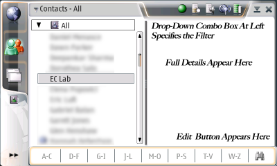 - Is there really any reason why the entire button bar has to be used up with rolodex tabs? How about a "new contact" or "edit contact" button?