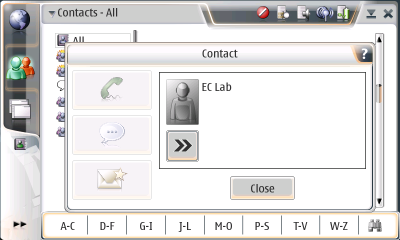 Unlike the web browser, the contacts application is decidedly not wonderful. Compared to the Newton's Names application, it's a very poor program. I have no compassion for Nokia here: they are a cell phone company and a well-designed contacts program GUI should be a central competency of the corporation; and they've made this program front and center, non-removable, in their OS UI.