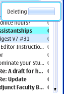 The N800 has various dialogs and notification boxes. For absolutely no good reason, none of them can be moved. The most egregious example is the notification box at right: the email application's "Deleting" notification. It's important to understand that this window pops up in a non-modal fashion: you can still do things in the background. That's nice. What's not nice is that the window obscures the scroll bar up-button, and sometimes the entire scroll bar thumb, and there's no way to get around it. Why can't you move this window? I really have no idea.
