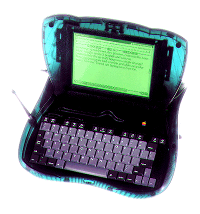 Now, the Newton also has flaws that the N800 should not copy: No threading or top-level multitasking. The Newton's C++ innards are preemptively multithreaded, but not the NewtonScript application environment. It is perfectly plausible for one app to hog as much time as it wanted. And furthermore, TCP/IP is very slow because it had to all be done with event callbacks. No file system. Without one, Newton applications could not easily trade files with external systems, since the notion of "files" was somewhat alien. No file system also meant that large streams of data (web pages, for example) were nontrivial to shuffle in and out and manage. Doable but problematic. No built-in keyboard except in the laptop-style Emate 300 shown at left. Many people (myself included) can type much faster than we can write. Sure, the Newton had an optional, loud keyboard which plugged into the serial port. But even a slide-out thumb board would have been enormously helpful sometimes. Over-reliance on developer toolkits tied to a proprietary, and dead, OS (MacOS 9). Apple never opened their development tool sources. Now with MacOS 9 gone, the Newton third-party development is extremely difficult. Segmented memory space. The Newton reserved chunks of RAM for the NewtonScript VM, the screen, C++ processes, globals, etc. This made expanding RAM in one of those segments nearly impossible short of modifying the ROM. Don't expect Linux on this device any time soon.