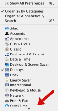 - What in the world is the giant grayed-out scroll triangle doing there, wasting an entire line? Why not just have no scroll triangle there, which tells me the same thing? It's standard practice on a number of OSes for the menu triangle to only appear when you actually can use it. For example, at right is a MacOS X menu in three parts: the start of the menu, scrolling in the middle of it, and down at the bottom of it.