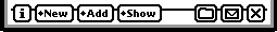 The little diamond icons indicate that clicking on a text button pops up a menu; "New" pops up "Person", "Company", and "Group". Pick one and you're on your way -- no need to save the old document (as previously mentioned). If you have a very common operation, it's fine to have a textual or icon button just for it. The "i" menu is the Information menu, and typically contains About, Help, and Preferences. The folder files the document under a folder, and the envelope, as mentioned, is the routing menu. The "X" is the close box. The Newton's main widgets are all on the bottom, which is easier to tap.