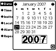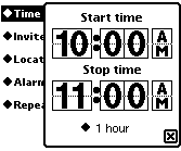 There are a wide variety of pop-ups for times and dates. Shown at right are pop-ups for time intervals, calendar days, and date intervals. |
