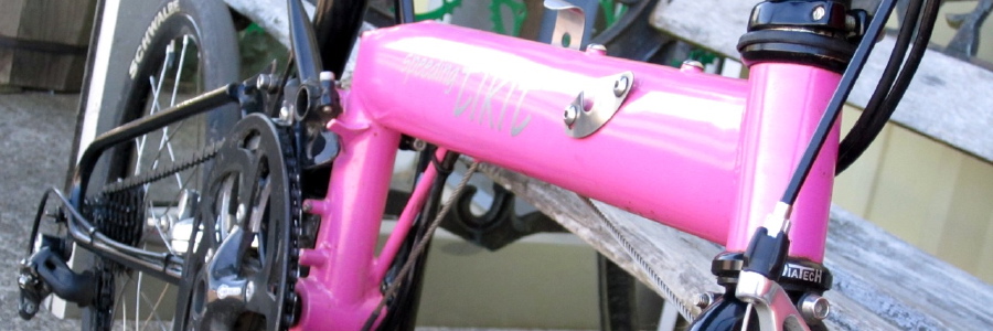 To stay folded, the tikit has a latch arm which locks onto a latch pin. To unfold the bike, a paddle swings down to pull the latch arm off of the pin. The flexible 2007 version of the latch arm has a long slot. Two stronger 2008 style latch arms have small holes. See the following Bike Friday video on determining what kind of latch arm you have.