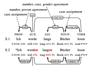 Text generation systems are ubiquitous in natural language processing applications. However, evaluation of these systems remains a challenge, especially in multilingual settings. In this paper, we propose L’AMBRE – a metric to evaluate the morphosyntactic well-formedness of text using its dependency parse and morphosyntactic rules of the language. We present a way to automatically extract various rules governing morphosyntax directly from dependency treebanks. To tackle the noisy outputs from text generation systems, we propose a simple methodology to train robust parsers. We show the effectiveness of our metric on the task of machine translation through a diachronic study of systems translating into morphologically-rich languages.