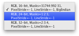 - When you create your movie in MASON, select a 16- or 24-bit format. Do not select a 32-bit format, which confuses iMovie for some reason. Here's the format options for JMF on OS X. Don't pick the third one.