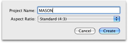 - Choose a name for your project -- it really doesn't matter -- and an aspect ratio for your movie (we can modify that later, I suggest Standard (4:3)).