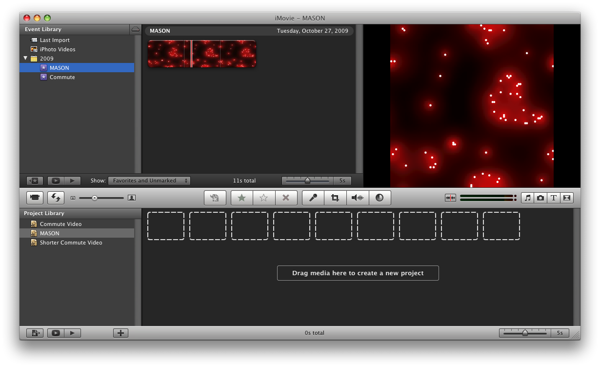 - Select the entire movie (double-click in the clip region, and then select Command-A for Select All). Then drag the selected region into the Project. If you're successful, the window will look like this: