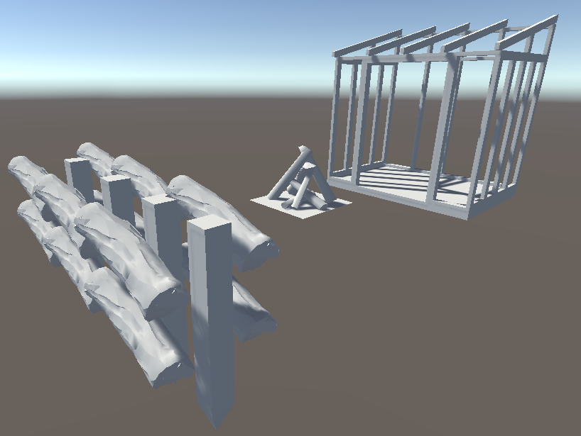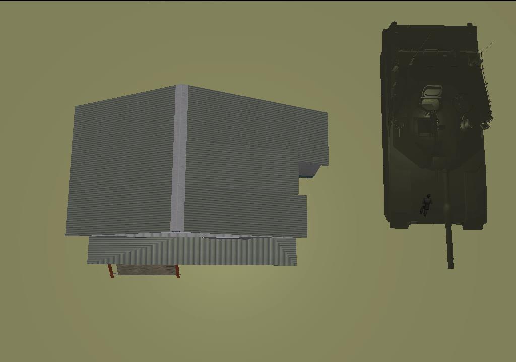 Scene created by hand in Unity. Platoon and targets are represented by humanoids. The obseravation post is represented by a tall cylinder. The slag pile is represented by a pile of sandbags. |
