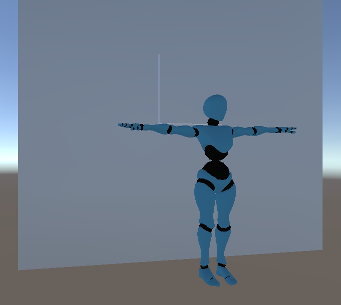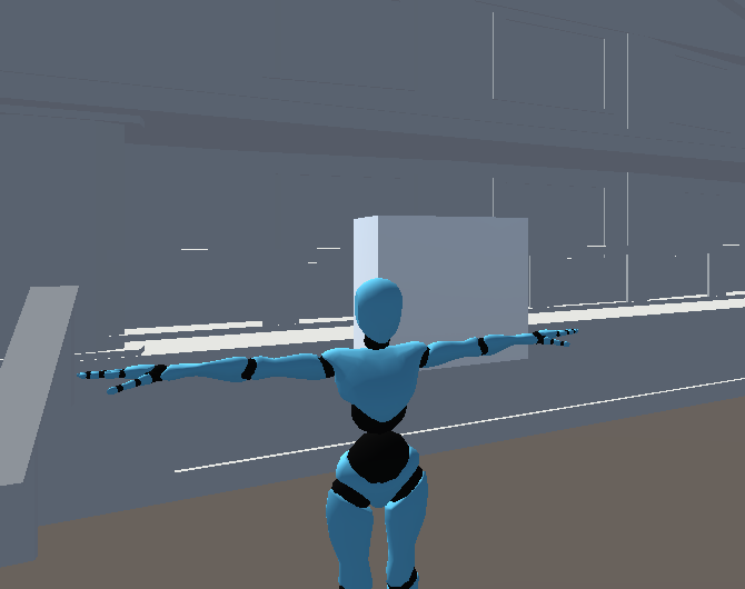 Scene created by hand in Unity. The cube represents the window and the humandoid represents a mark point.