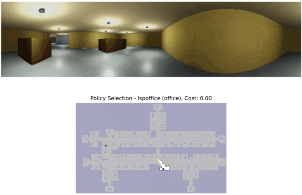 LSPOffice which was trained in similar office environments and navigates to the goal location with this policy.