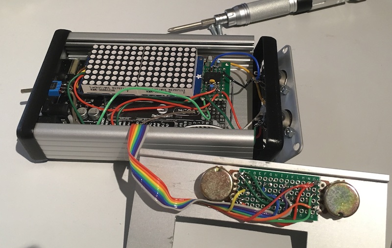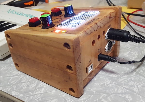 I'm making Gizmo available in the hopes that people will do fun things with it. Ideas I've had include porting it to the E-licktronic MIDI shield family, extending the interface to include the 16x8 Unztrument or even just the Trellis Keypad, upgrading to an OLED (though it may be too slow), attaching an arduino synthesizer shield, and of course making a decent case for this thing.