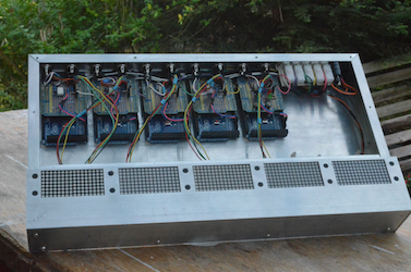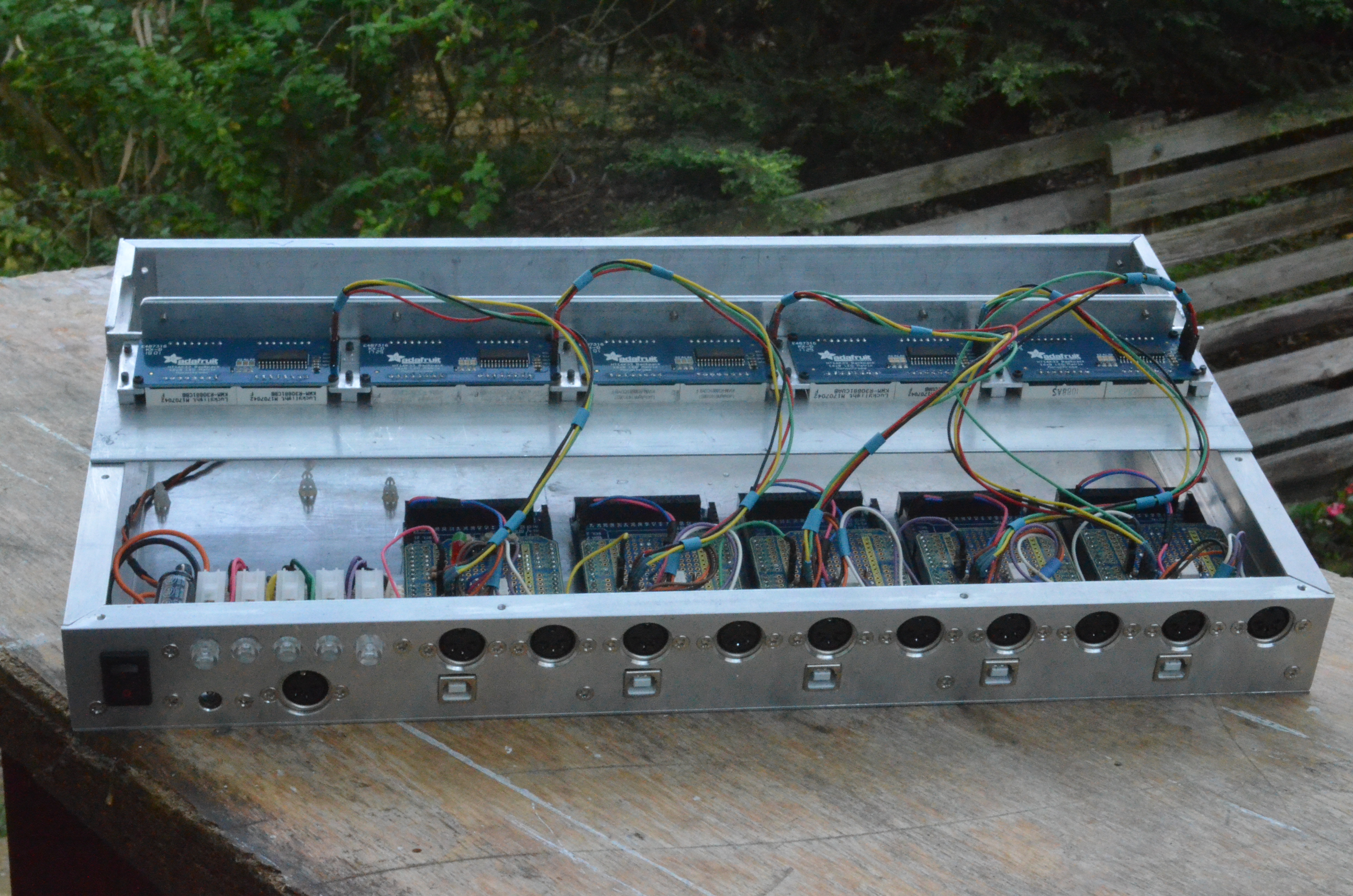 And now for the coup de grâce. GearSlutz user PatMaximum has provided photographs of his Five-Gizmo monster. They're all headless versions controlled remotely over MIDI.