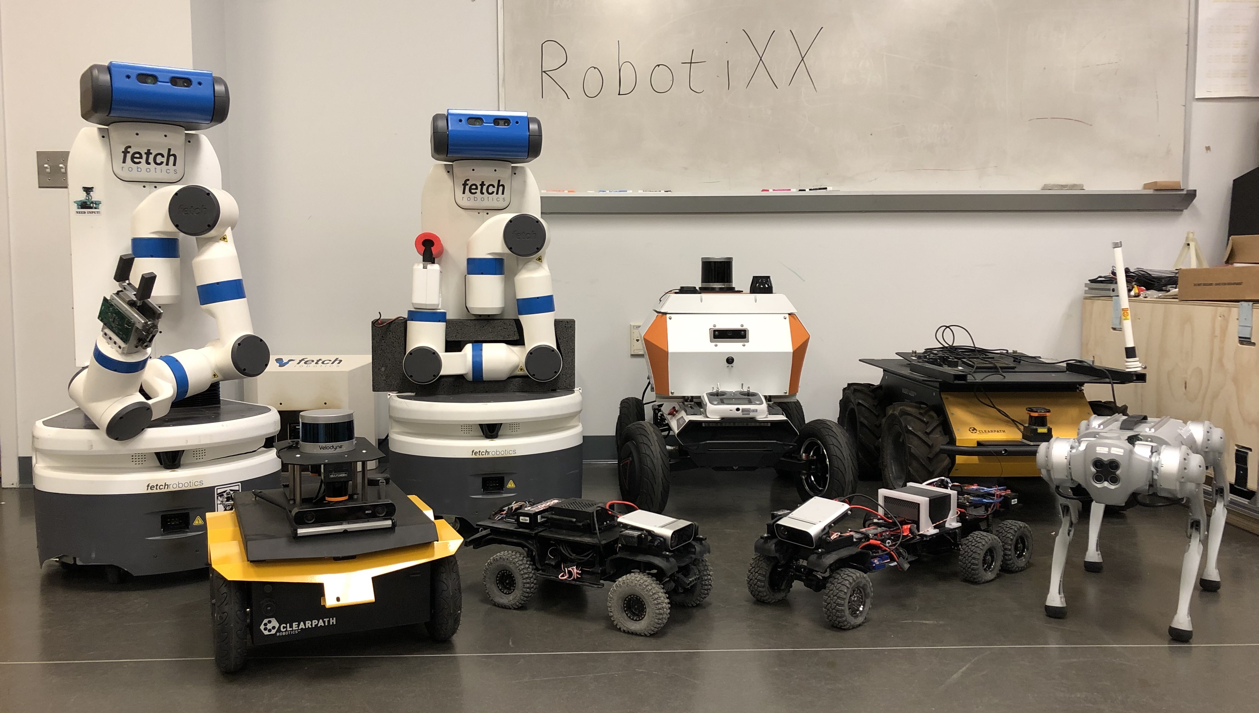 At RobotiXX lab, researchers (XX-Men) and robots (XX-Bots) perform robotics research at the intersection of motion planning and machine learning with a specific focus on robustly deployable field robotics. Our research goal is to develop highly capable and intelligent mobile robots that are robustly deployable in the real world with minimal human supervision. XX-Men have vast experience deploying XX-Bots to tackle real-world problems in the field, building advanced robot platforms, developing complex sensing and actuation systems, designing sophisticated motion planning algorithms, and setting up standardized testbeds and metrics in order to create highly capable and intelligent robots to locomote on land, in air, and at sea.