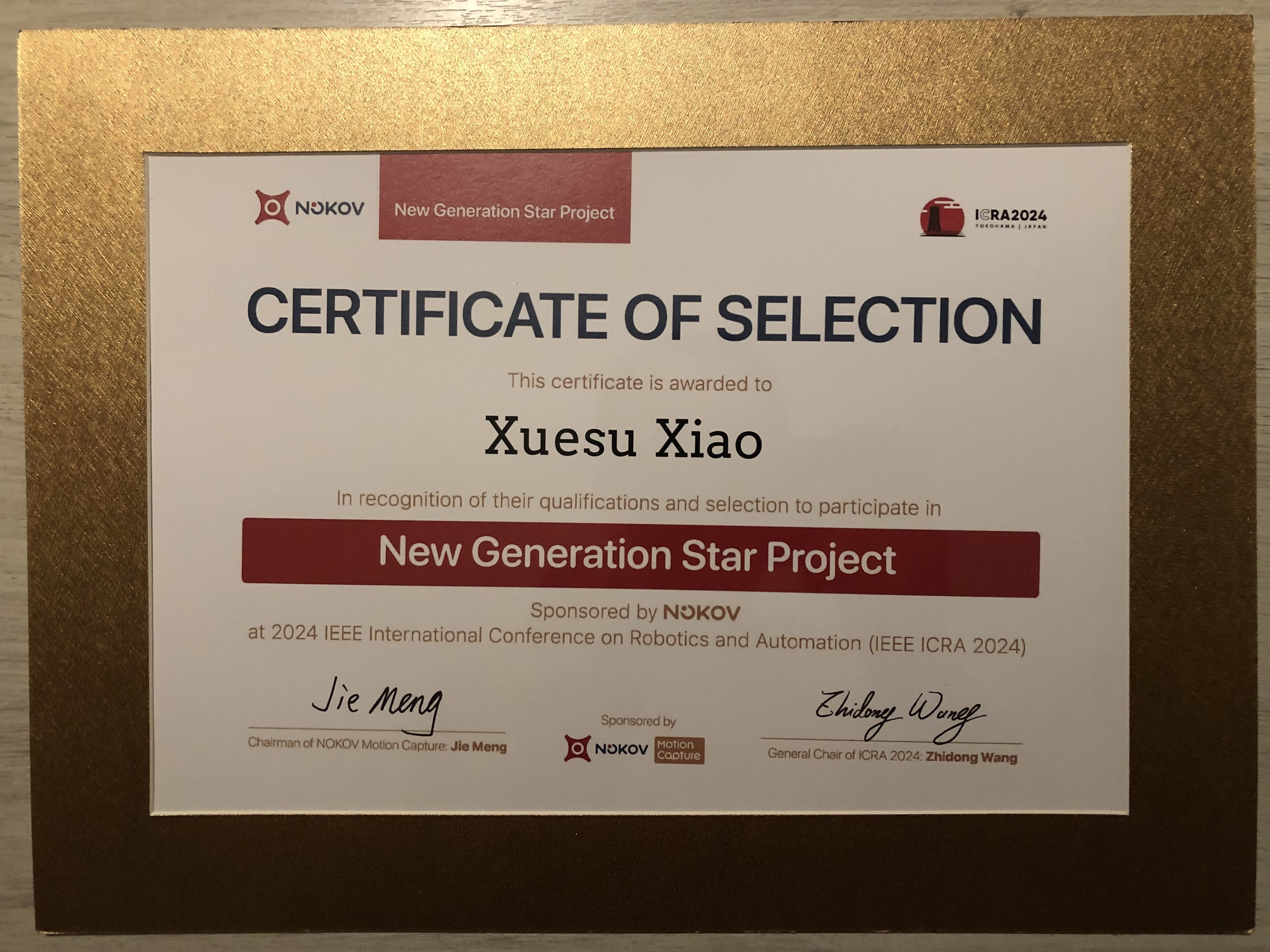 05/17/2024:Professor XX has been selected in the ICRA 2024 New Generation Star Project! [Certification]